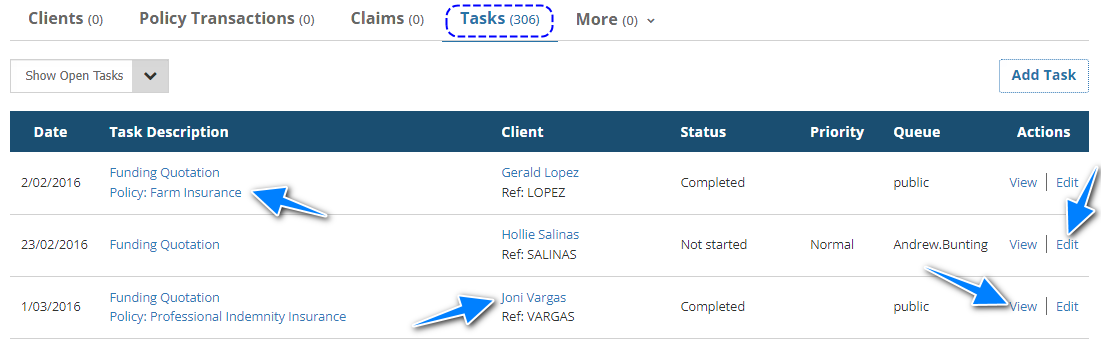 | Policy Number / Class of Risk | Takes you to the policy view. |
