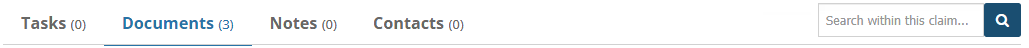 Once the claim is saved, the Claim stores all the information in one location so that it's easily accessible. You can view tasks, documents, notes and contacts linked to the claim by viewing the claim itself.
