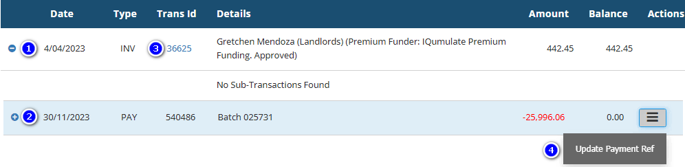3. Invoice hyperlink - Takes you to the transaction related to the invoice.