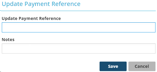 4. Update Payment Reference - applicable to Batch payments made to the AR and opens a dialogue box where you can update the payment reference and notes.