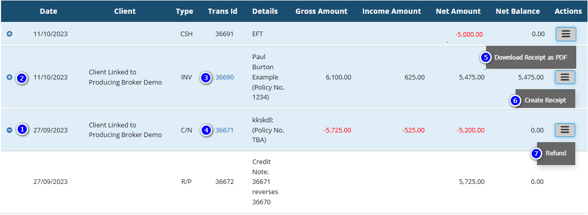 3. Show Invoices For Client - Shows invoices for the current Producing Broker as well as for clients that are linked to the Producing Broker.