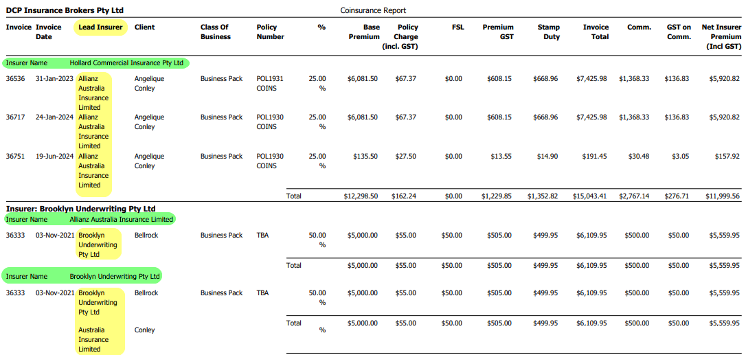 The Coinsurance Bordereau is the main report for Co-insurance and will display the following: