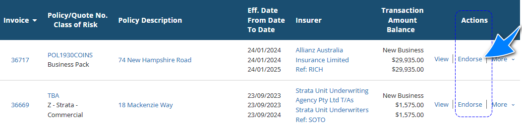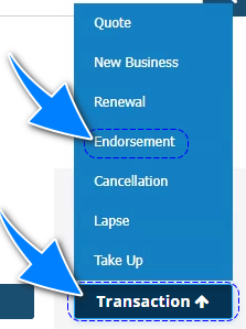 On the Home page, hover over the Transaction icon and select Endorsement.