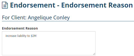 Once the Endorsement is complete, you'll see the Endorsement Reason noted on the following: