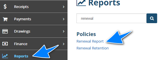 If you have access to the Renewal report, select Reports from the side menu and choose Renewal Report.