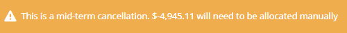 ![]() | If the original policy has NOT been paid, INSIGHT will auto-allocate the cancellation credit to the debt. Otherwise, you will need to arrange a refund of the cancellation credit. | ![]() | INSIGHT will NOT auto-allocate credits for a Mid-term Cancellation. You must manually allocate the cancellation credit to the original policy (if NOT paid) or arrange a refund of the cancellation credit (if paid). |