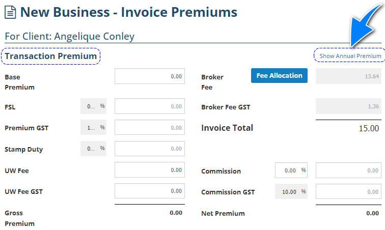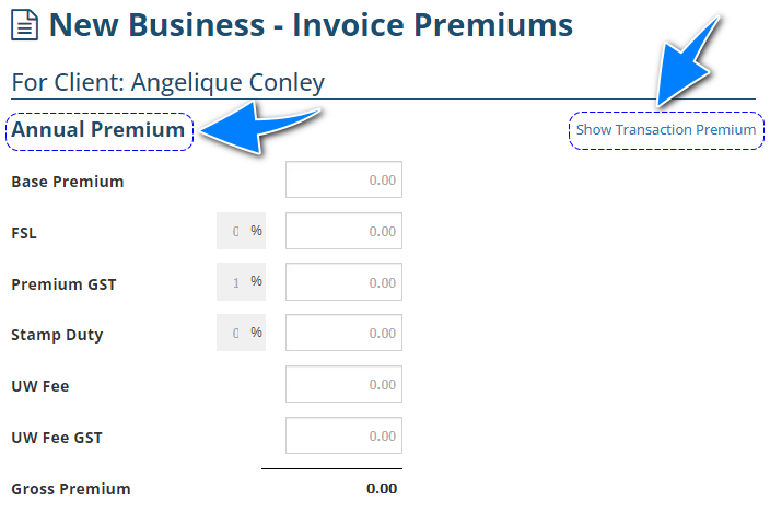 ![]() | Annual Premiums are pre-populated using the Annual Premiums from the LATEST transaction. |