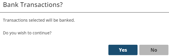 ![]() | The transactions displayed are based on your previous selections. This page shows you the total amount of receipts and the total amount of receipts selected to be part of the bank deposit slip. |