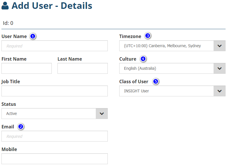 1. Select Setup, then Security. 2. Under the Users tab, select Add. 3. Complete all wizard pages and select Save to create the user. NOTE: Most fields are self-explanatory, however, this article will highlight those requiring further explanation. | Add User Wizard pages for completion:![]() |