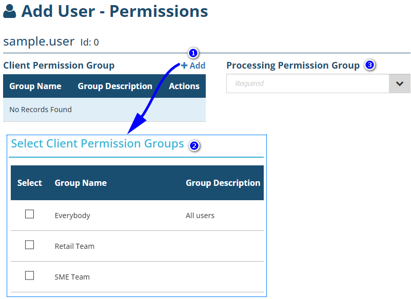 3. Processing Permission Groups - select the user's PPG; a user can only have one PPG.