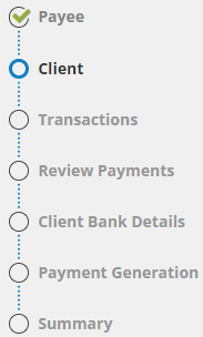 ![]() | This page is auto-filled with the bank details saved in the client record. If there are no details in the client record, then this page will be blank. |
