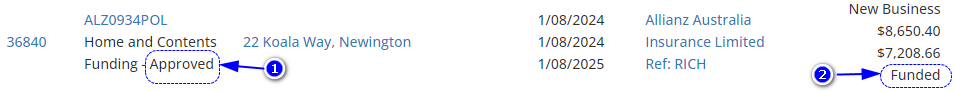 ![]() | Must have a funding status of Submitted, Approved or Finalised. When the funder is set up to link with INSIGHT, the funding statuses will auto-update as the loan progresses. When the funder is not linked, you can manually update the status through the Premium Funding area in the Client's menu. |