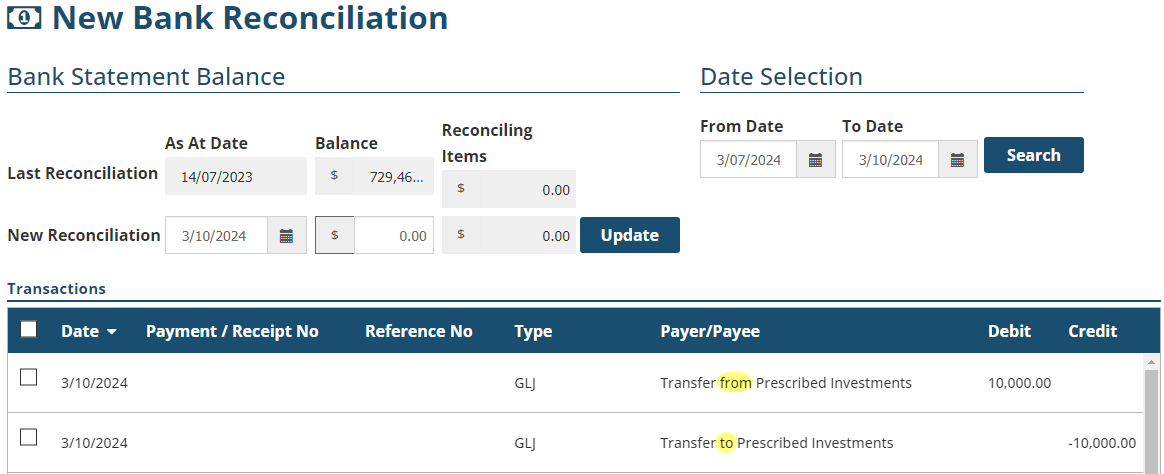 ![]() | You can track the movement in and out of the Trust using the Bank Reconciliation wizard. |