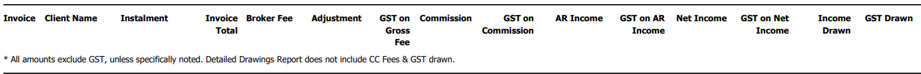 ![]() | Detail - lists the individual transactions that make up the drawings under each group based on your selected date range. |