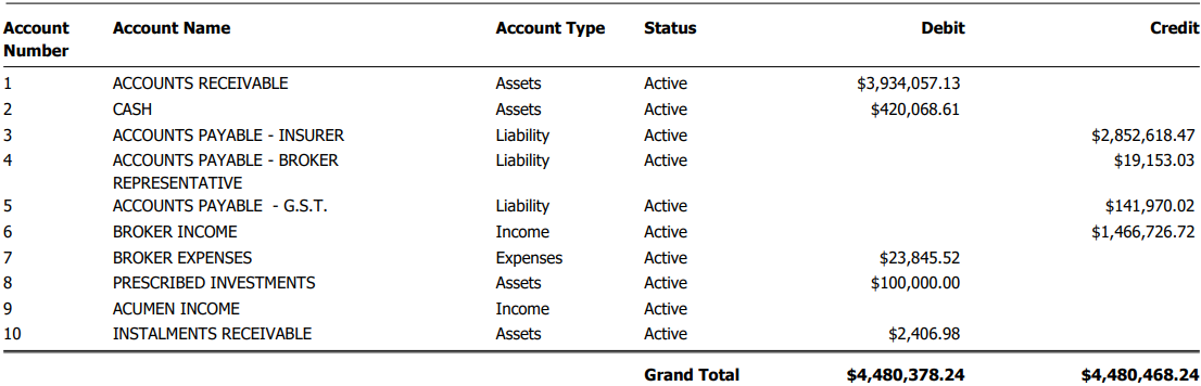![]() | INSIGHT Trust account Balance - Insurance Broking Account (Bank Balance) PLUS Prescribed Investments. |