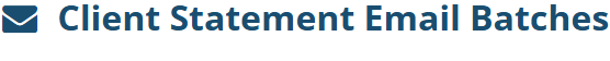 | Works with the Client Statement - Batch Client Report when Email is chosen as the Delivery method and is used to track the email delivery statuses of the Client Statements sent immediately and sent at a scheduled date/time. This is also the page you are directed to when View Past Email Batches is selected. | ![]() |