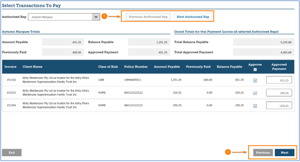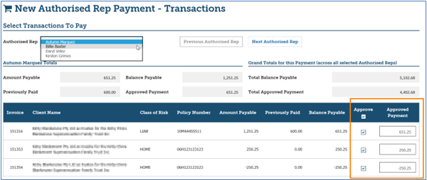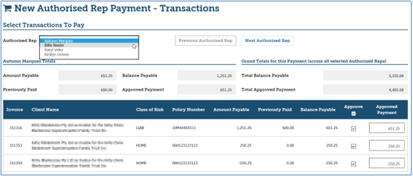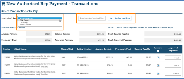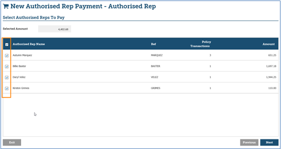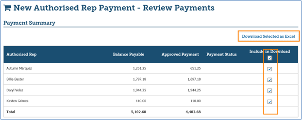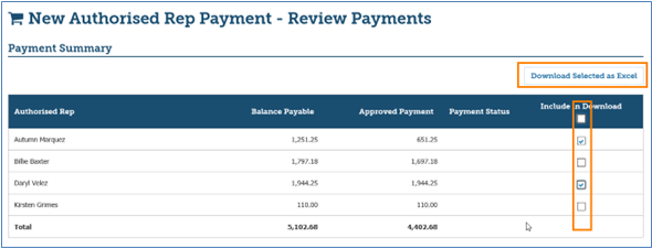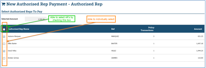 3. Select the Authorised Rep/s to be included in the AR payment - you can select one or more AR’s from the list.