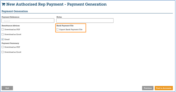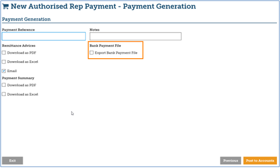 - Ability to export the Payment Bank File (Australia Only) containing the selected transactions from within the payment wizard