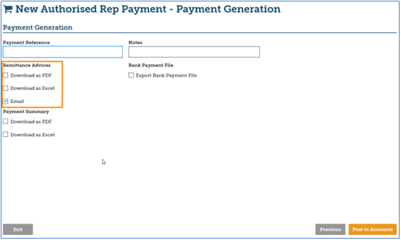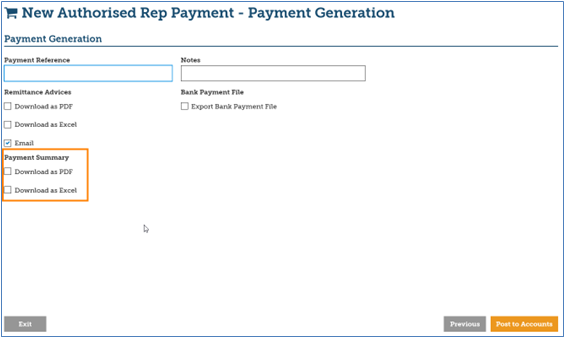 The Authorised Representatives (AR) Payment Wizard in INSIGHT will allow the following: