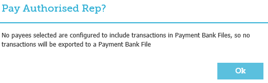 NOTE: If the selected AR is not configured for the Bank Payment File, the below message will notify the user of this.