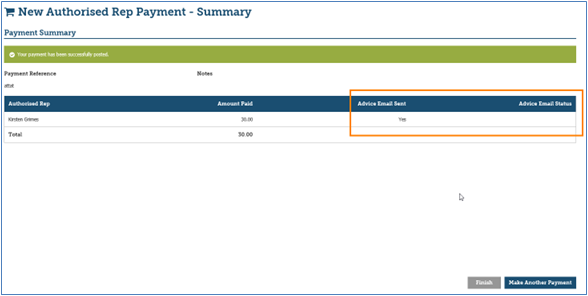 - Show a Payment Summary page that lists the payments and the status of the advice email each payee is sent.