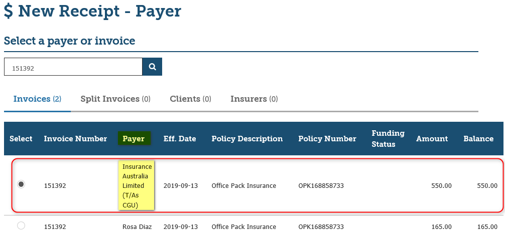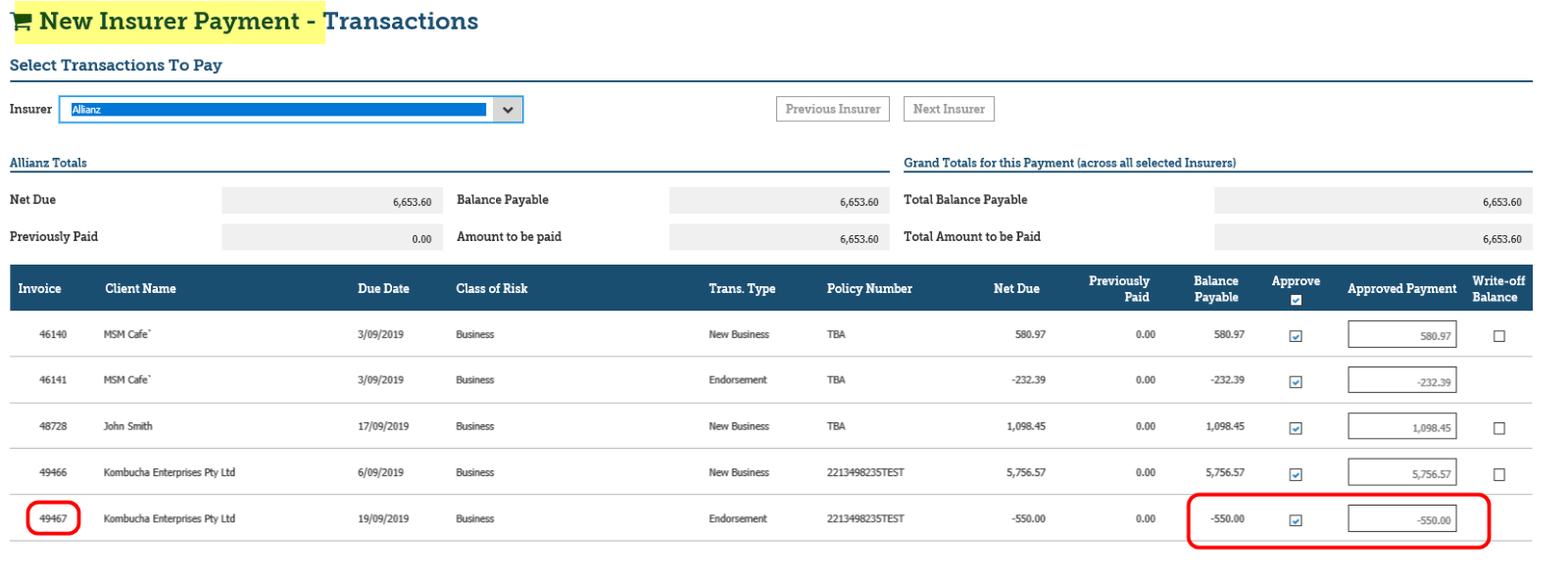 - An Insurer or Authorised Representative payment has been processed in INSIGHT.