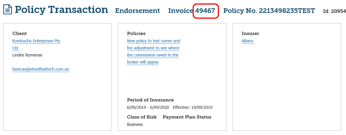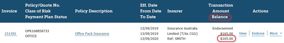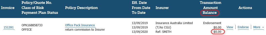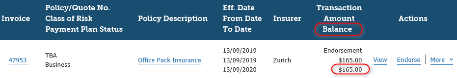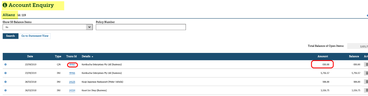 The Income Adjustment Endorsement will have the Broker Fee as an outstanding balance and will appear in the Account Enquiry: