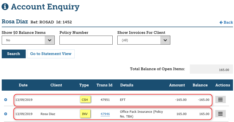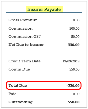 When there is a commission owing to the broker and/or due to the insurer, it will be reflected in the Insurer Account.