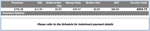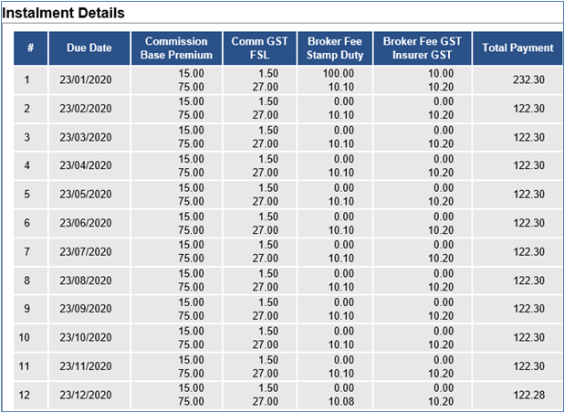 6. The Invoice for manual instalments will contain the Broker Fee and Broker Fee GST amount to be payable to the Broker. It will also detail the overall policy premium amounts.