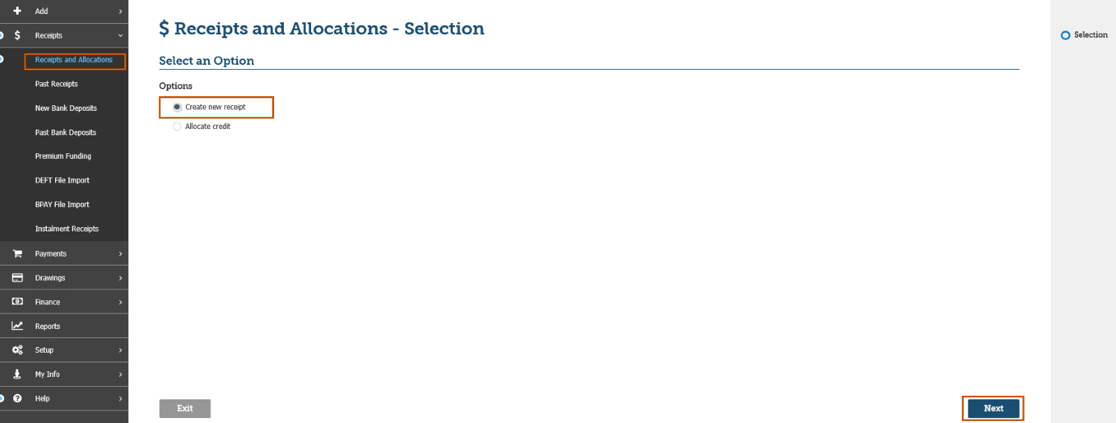 1. To process Manual Instalment Receipt Select Receipts → Create manual receipts