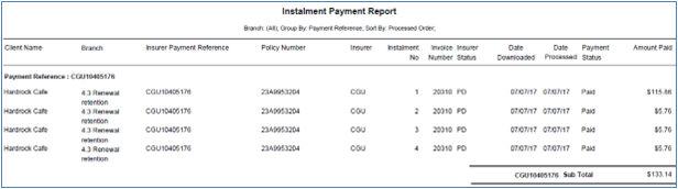 In the case of a discrepancy between the file uploaded and the amount remitted to your trust account, it is recommended you obtain the remittance report from the insurer and compare it to your “Instalment payment receipt” (defined the next section of this guide) report to find the discrepancy.