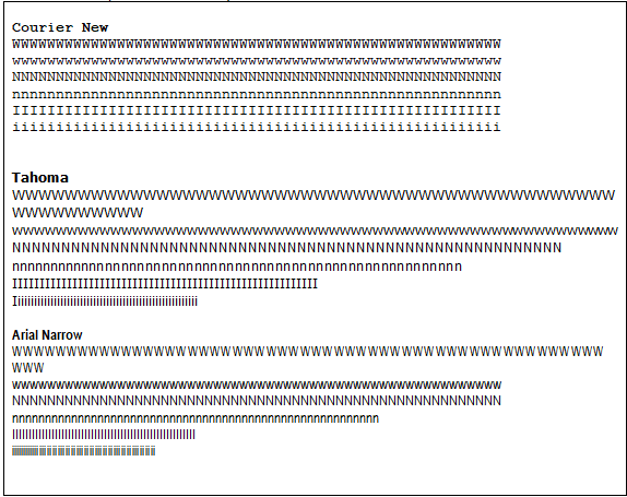 Characters do not line up on a grid - formatting to line up items needs to be done correctly by using tables and tabs. Otherwise, there will be text alignment issues when switching between fonts/sizes. For example, Tahoma.