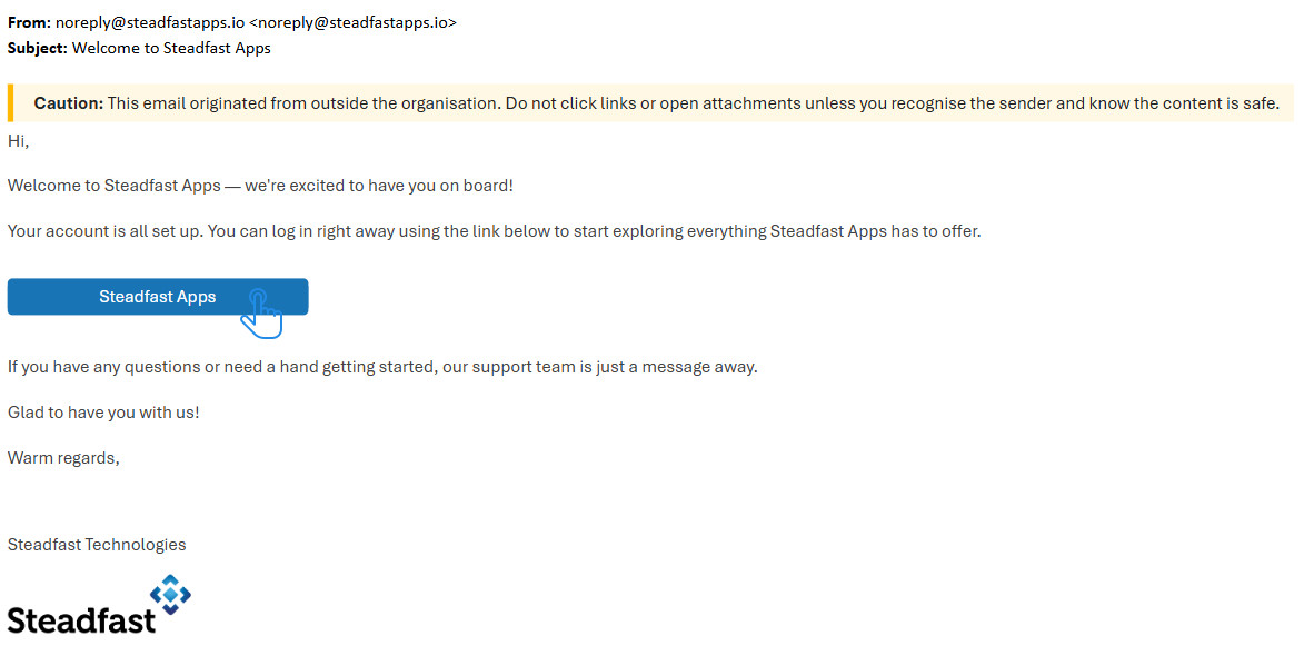 Use the link in your welcome email or open your browser and visit steadfastapps.io (or your brokerage’s custom login page if applicable).