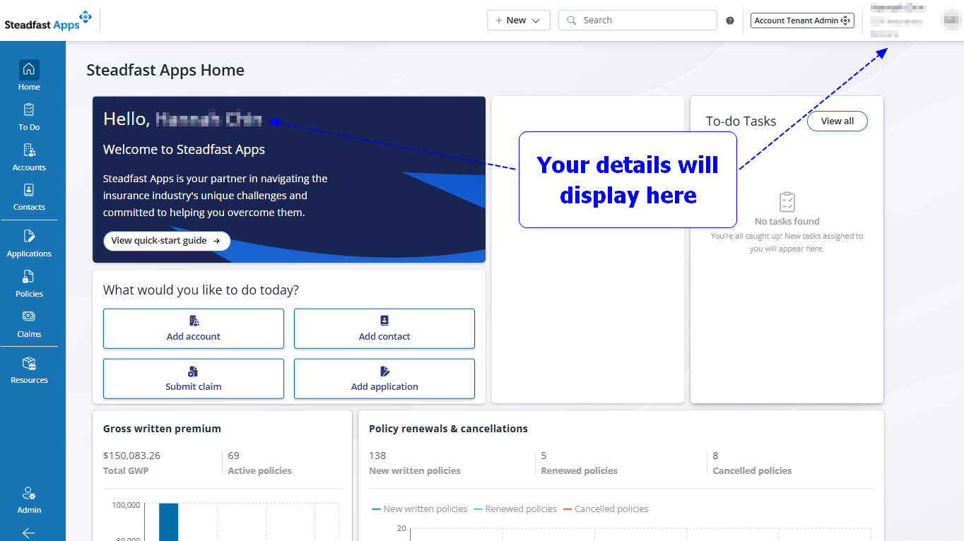 7. You will be directed to your Steadfast Apps Home Page Dashboard