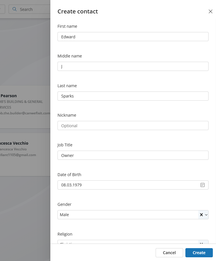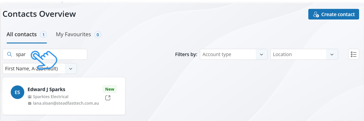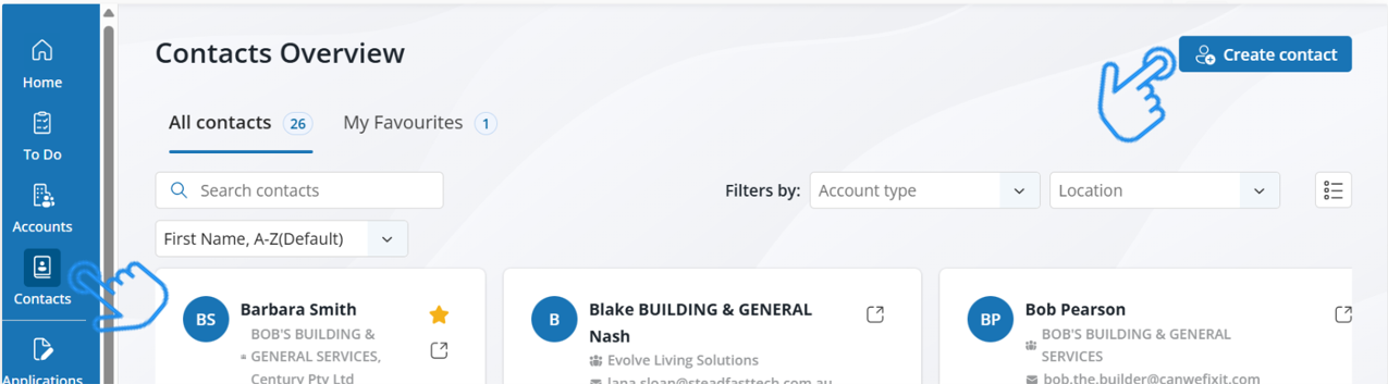 Creating a contact in Steadfast Apps is just as flexible as creating an account, with multiple entry points to suit your workflow.