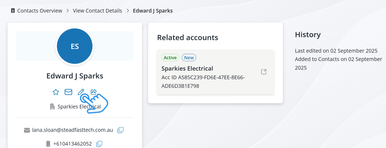 3. Under the contact’s name, click the pencil icon to launch editable fields.