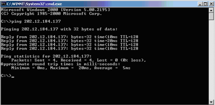 If you get 4 replies (similar to below), this indicates your Internet connection is up and running. In addition, it is important that the reply time is not consistently above 200ms.