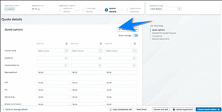 | When creating an application, head to the Quote Details page and check out the Compliance section. The table gives you a quick view of key info - document type, version, required or not, date and method sent, status, and available actions. You’ll also find the Add Compliance Record button right there for easy updates. | ![]() |