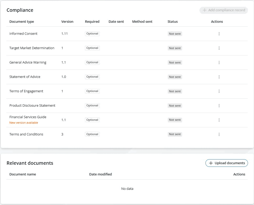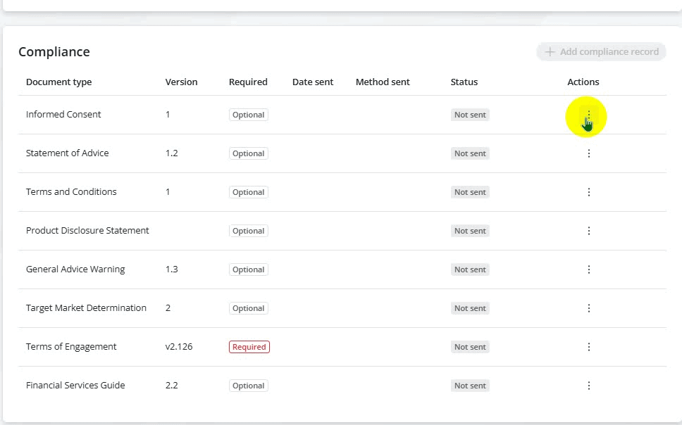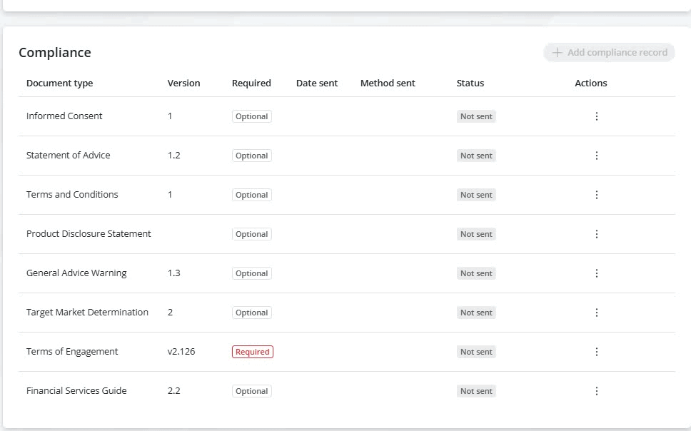 Marking a compliance document as Required simply flags its importance and marks it as required for the client to complete - it won’t block you or force an update the record. You’re still in control of when and how it’s handled.
